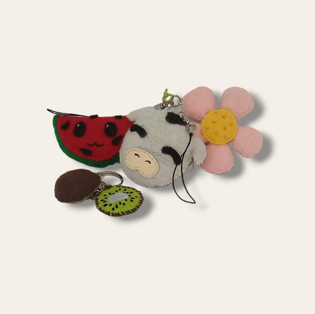 Porte-clés en feutrine rembourrés cousus main, pièces uniques.